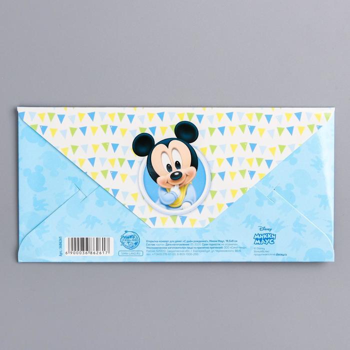 Открытка-конверт для денег "С Днем Рождения!", Микки Маус