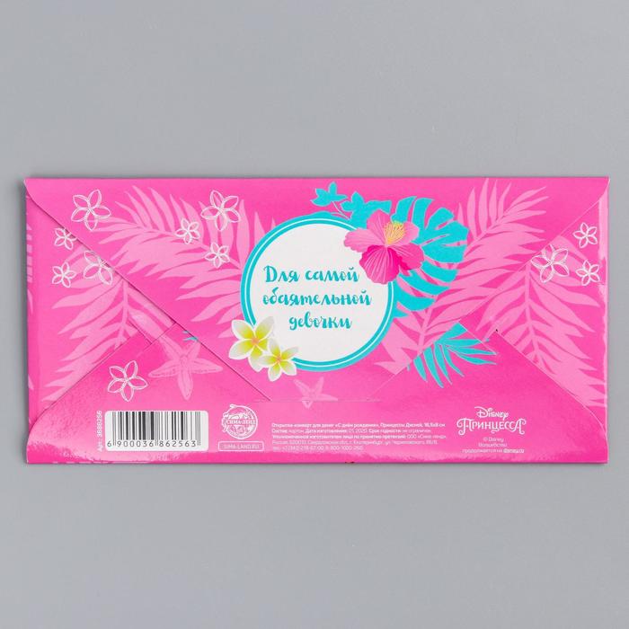 Открытка-конверт для денег "С Днем Рождения!", Принцессы: Русалочка