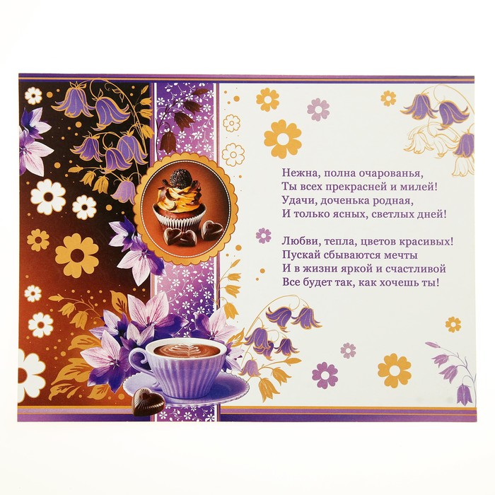 Открытка "Любимой дочке!", кофе с конфетой, фольга, А5