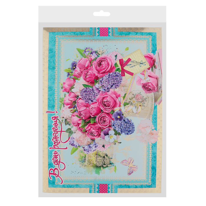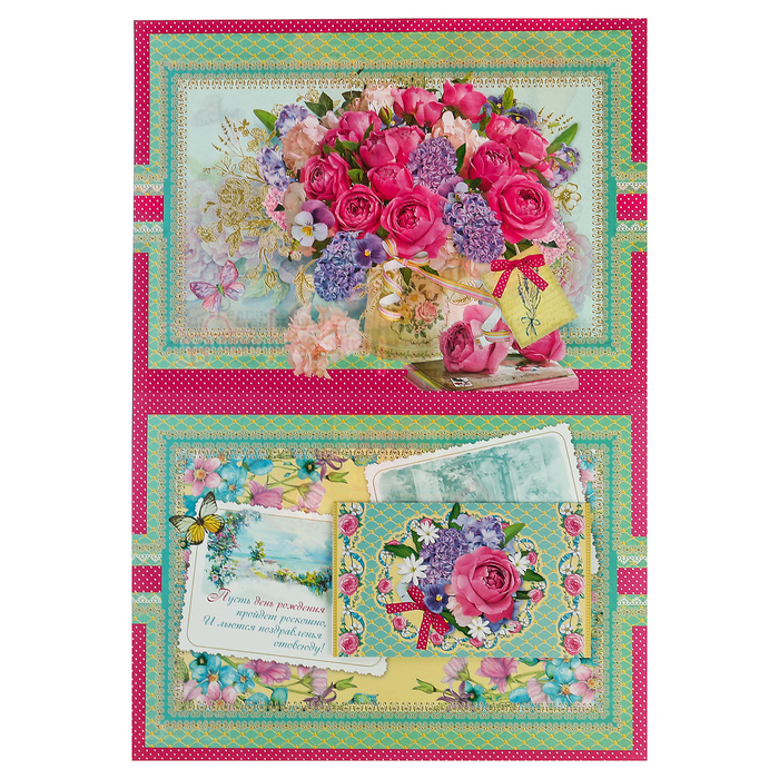 Открытка-матрёшка "С днем Рождения!" букет цветов, А3