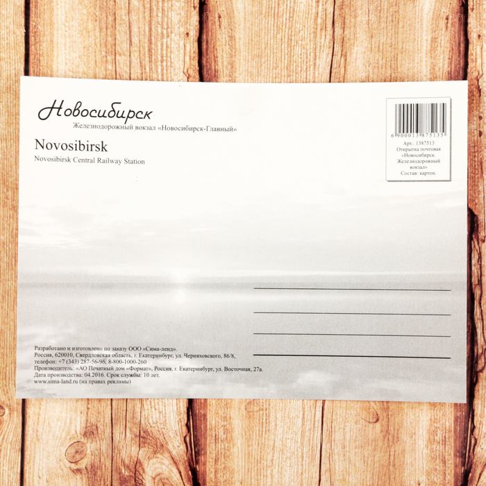 На открытке изображён крупнейший транспортный узел — железнодорожный вокзал Новосибирск-Главный, который является одним из важнейших в стране и самым большим в Сибири. Здание построено в 1930 году по проекту архитектора Н. Г. Волошинова. Согласно его замыслу, вокзал с лаконичными формами должен был напоминать паровоз, мчащийся на восток. Однако под влиянием советской идеологии в план были внесены стилистические изменения.