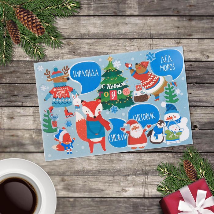 Открытка поздравительная с наклейкой "Яркие новогодние звезды" 12х 18 см