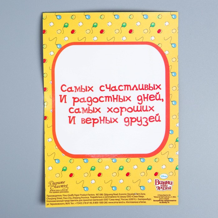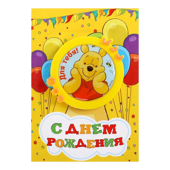 Открытка с магнитом-рамкой "С Днем Рождения. Для тебя!", Медвежонок Винни и его друзья