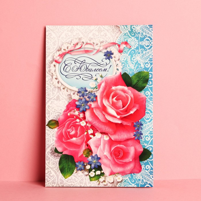 Открытка «С Юбилеем », розовые розы, 12 х 18 см