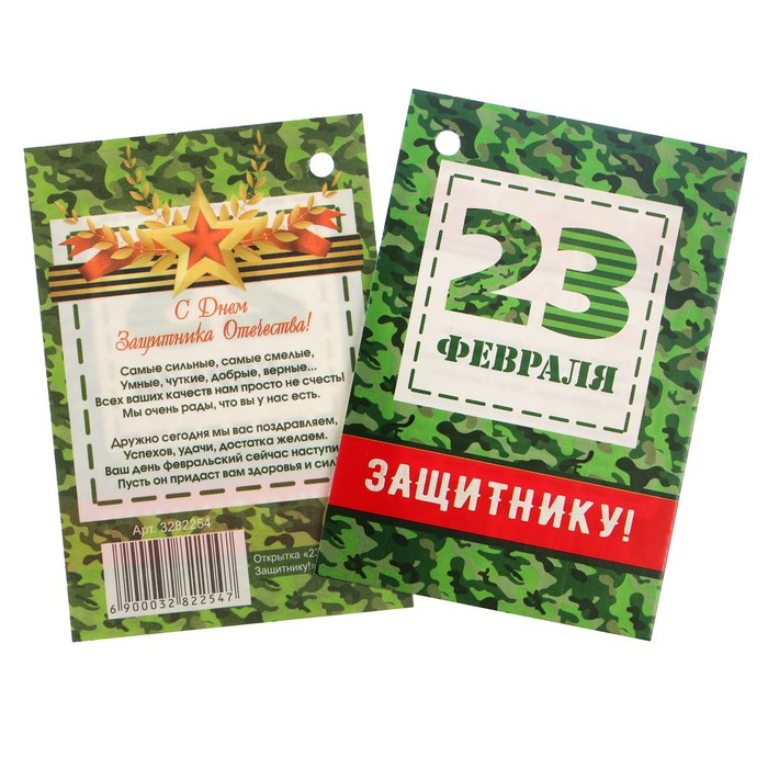 Выразить свои чувства и дополнить основной подарок тёплыми словами вам поможет Открытка - шильдик "23 февраля. Защитнику!" камуфляж. С ней ваше пожелание «Счастья, любви и здоровья» приобретёт трепетный и душевный подтекст. А воспоминания о праздничном дне ещё долго будут радовать адресата.