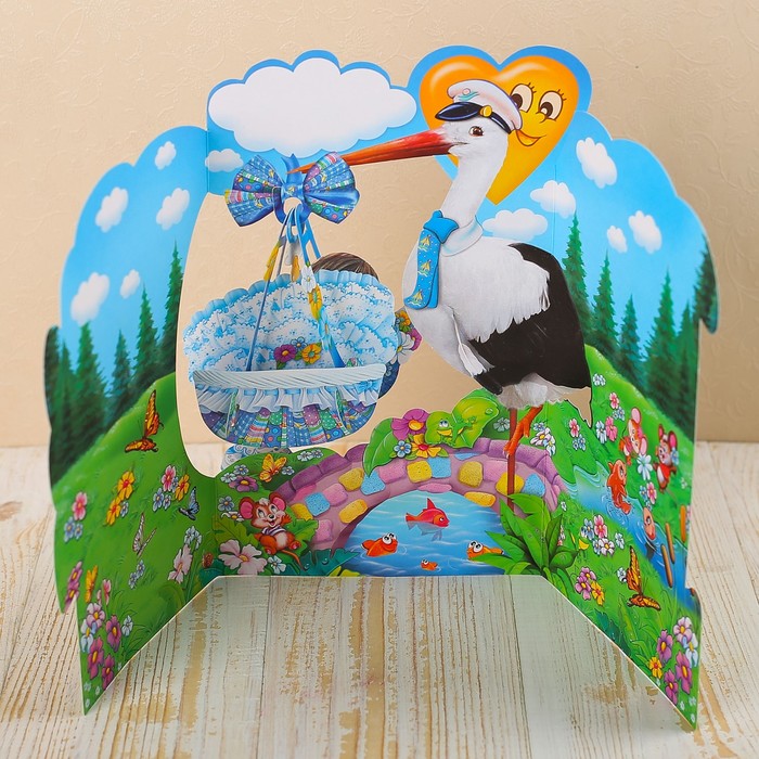 Открытка трёхмерная "С Новорожденным" аист, А5