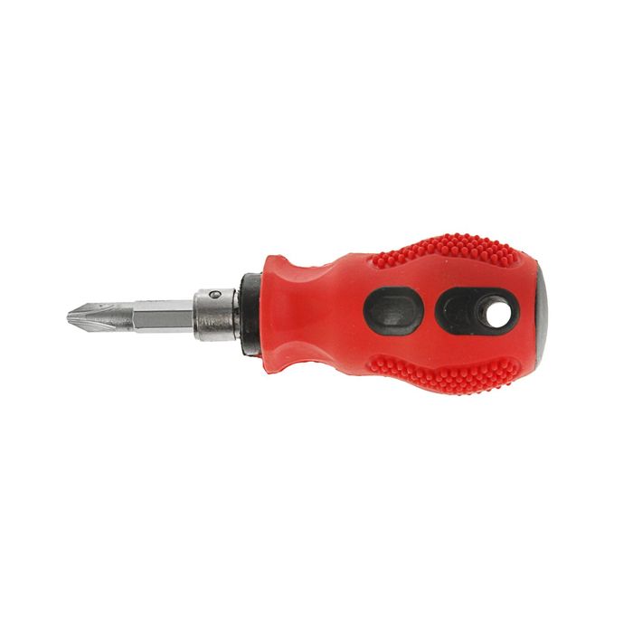 Особенность изделия в том, что это две отвёртки в одной — крестовая и шлицевая.
