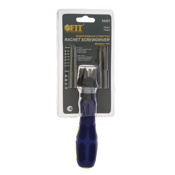 Отвертка FIT "Профи", усил. реверс, биты 25 мм: SL5-6, РН1-2, PZ1-2, 65 мм: SL4-5, РН1-2