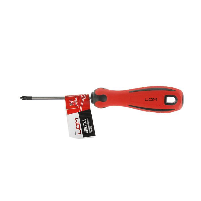 Отвертка крестовая LOM, PH1, 5х75 мм (+), обработка, полировка, двухкомпонентная рукоятка
