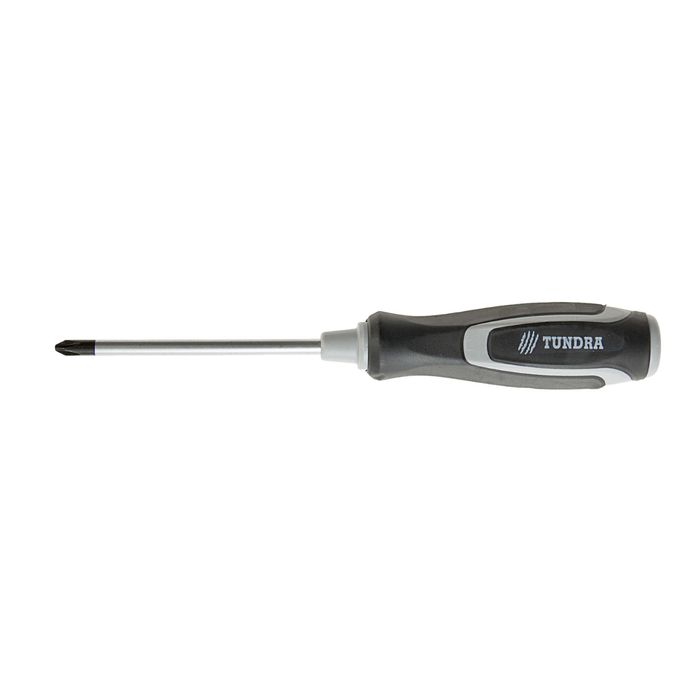 Отвертка крестовая TUNDRA premium, PH2 6х100 мм (+), обработка сатин, двухком. рукоятка