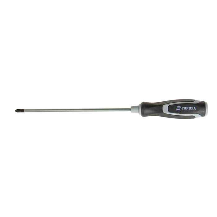 Отвертка крестовая TUNDRA premium, PH2 6х200 мм (+), обработка сатин, двухком. рукоятка