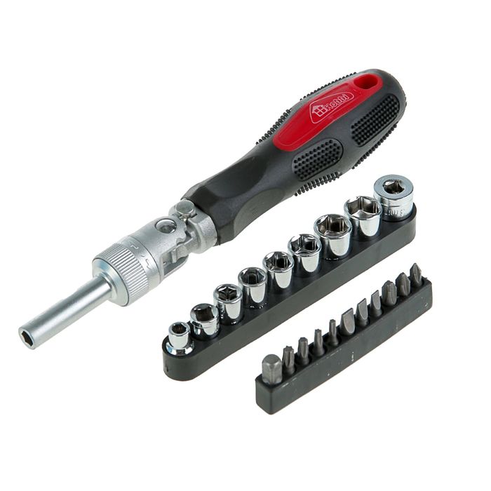 Отвертка реверсивно-рычажная Hobbi, с насадками, 20 предметов
