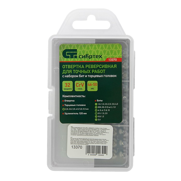Отвёртка с битами и головками "СИБРТЕХ", CrV, для точных работ, 32 предмета