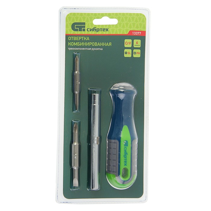 Отвёртка с битами "СИБРТЕХ", комбинированная