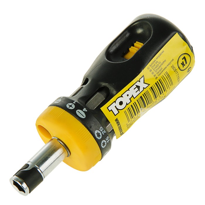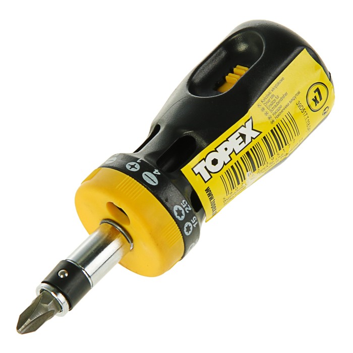 Отвертка с битами TOPEX, набор 7 шт., с реверсом