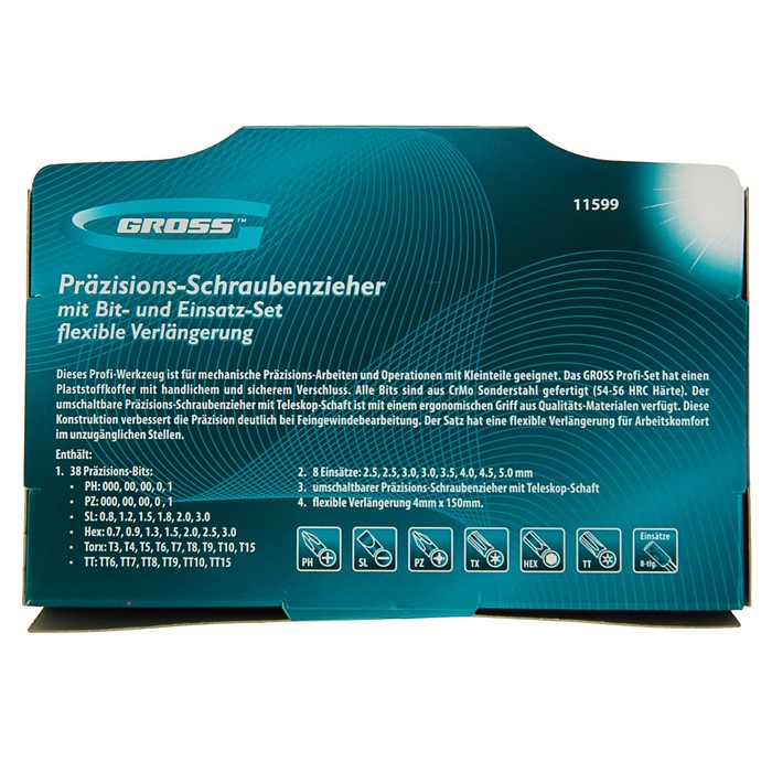 Отвёртка с набором бит и головок GROSS, для точных работ, CrMo, гибкий привод, 48 предметов