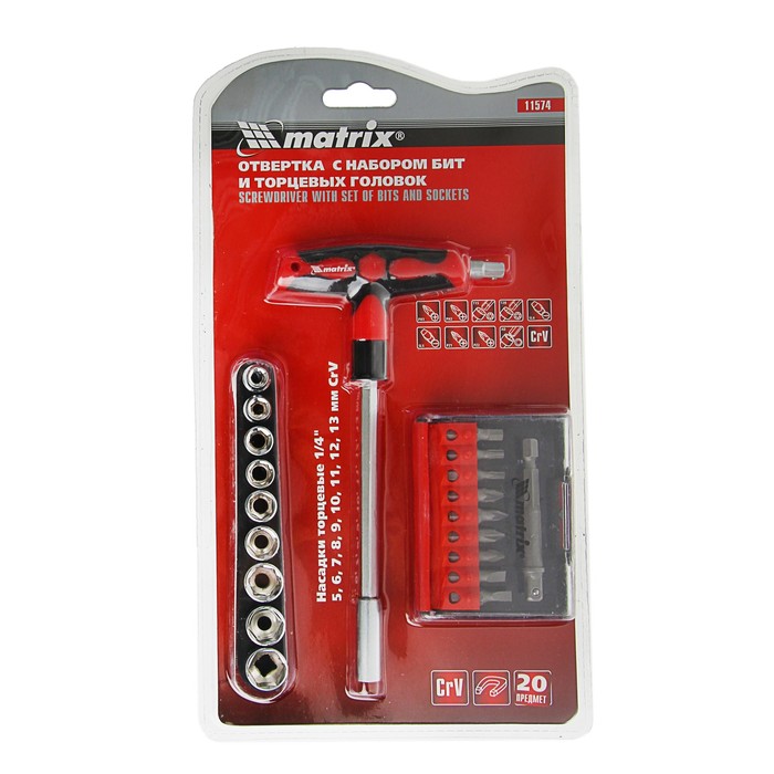 Стройте грандиозные планы, реализуйте свои идеи и не бойтесь знакомиться с новыми материалами и техниками. У вас всё получится, ведь у нас вы найдете инструмент как для бытового использования, так и для профессиональной деятельности. Может быть, Отвёртка с набором бит MATRIX, CrV, Т-образная, 20 предметов — это именно то, что вы всегда искали.