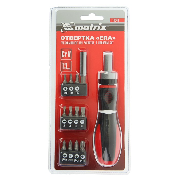 Стройте грандиозные планы, реализуйте свои идеи и не бойтесь знакомиться с новыми материалами и техниками. У вас всё получится, ведь у нас вы найдете инструмент как для бытового использования, так и для профессиональной деятельности. Может быть, Отвёртка с набором бит MATRIX MASTER, CrV, реверсивная, 11 предметов — это именно то, что вы всегда искали.