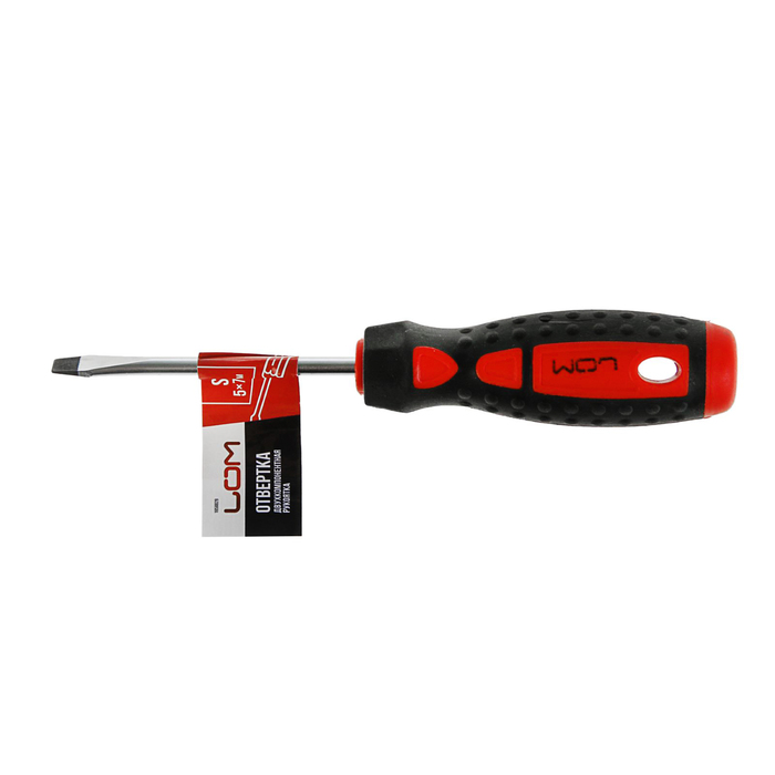 Отвертка шлицевая LOM, SL, 5х75 мм (-), обработка сатин, двухкомпонентная рукоятка