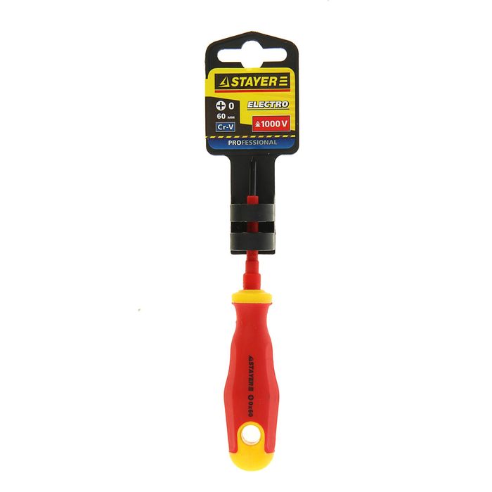 Отвертка STAYER Profi Electro, диэлектрическая до 1000 В, двухкомп. рукоятка, PH, №0, 60 мм