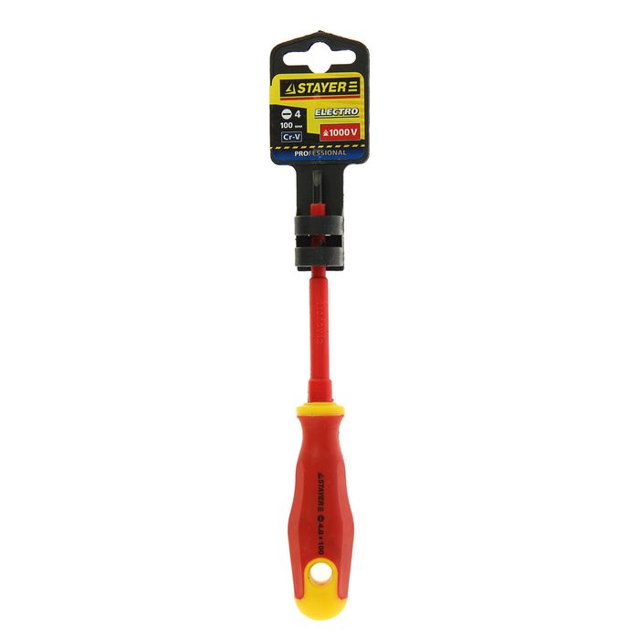 Отвертка STAYER Profi Electro, диэлектрическая до 1000 В, двухкомп. рукоятка, SL, 4 х 100 мм