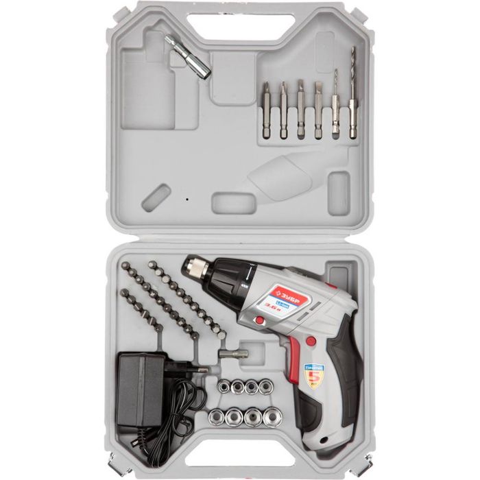 Отвертка "ЗУБР" ЗО-3.6-Ли КН43, аккум., 1.5 Ач, 3.6В, реверс, HEX 1/4, 43 предм, кейс
