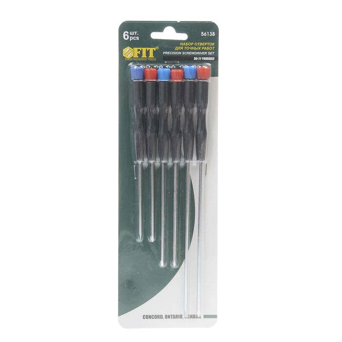 Отвертки FIT, для точных работ, удлиненные, 6 шт, PH/SL