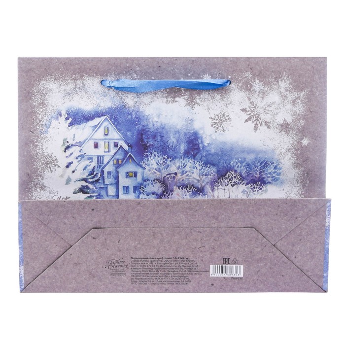 Пакет крафтовый горизонтальный «Зимний пейзаж», 15 × 12 × 5,5 см