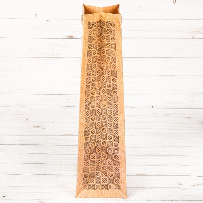 Любой подарок начинается с упаковки. Что может быть трогательнее и волшебнее, чем ритуал разворачивания полученного презента. И именно оригинальная, со вкусом выбранная упаковка выделит ваш подарок из массы других. Она продемонстрирует самые тёплые чувства к виновнику торжества и создаст сказочную атмосферу праздника. Пакет крафтовый под бутылку «Настоящему мужчине», 12 × 36 × 10 см — это то, что вы искали.