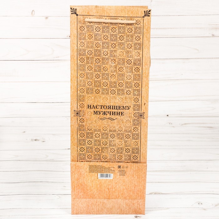 Пакет крафтовый под бутылку «Настоящему мужчине», 12 × 36 × 10 см