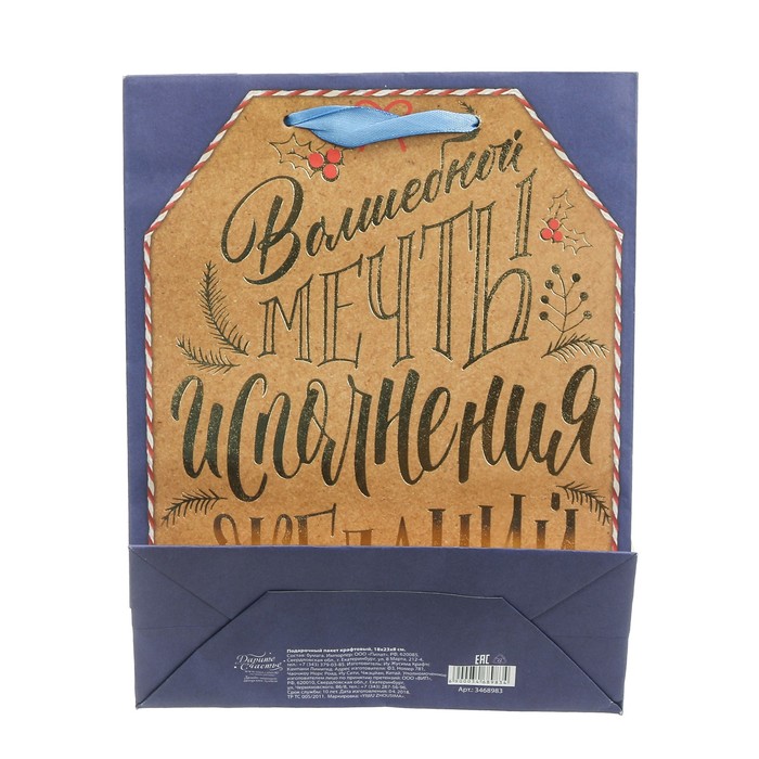 Пакет крафтовый вертикальный «Исполнения желаний», 12 × 15 × 5,5 см