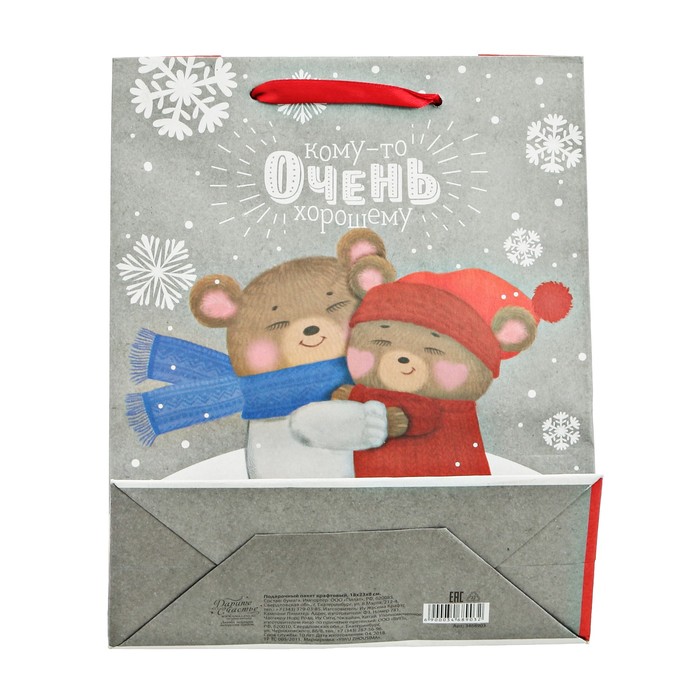 Пакет крафтовый вертикальный «Медвежата», 12 × 15 × 5,5 см