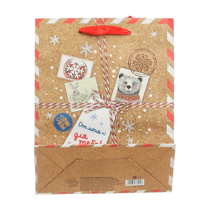 Пакет крафтовый вертикальный «Новогодняя посылка», 12 × 15 × 5,5 см