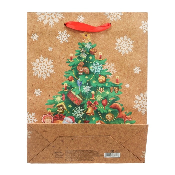 Пакет крафтовый вертикальный «Подарки под ёлкой», 18 × 23 × 8 см
