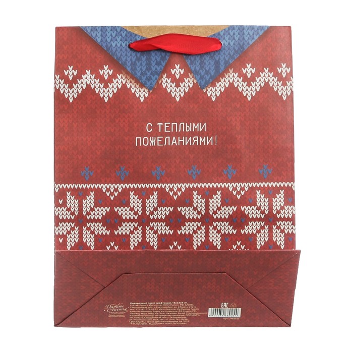 Пакет крафтовый вертикальный «Тёплый свитер», 18 × 23 × 8 см