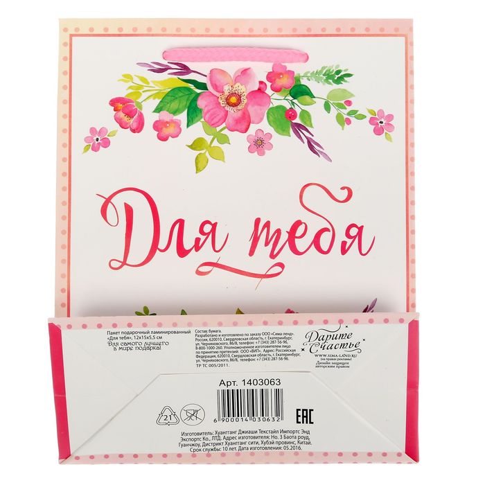 Любой подарок начинается с упаковки. Что может быть трогательнее и волшебнее, чем ритуал разворачивания полученного презента. И именно оригинальная, со вкусом выбранная упаковка выделит ваш подарок из массы других. Она продемонстрирует самые тёплые чувства к виновнику торжества и создаст сказочную атмосферу праздника. Пакет ламинированный вертикальный «Для тебя», S 11 × 14 × 5,5 см — это то, что вы искали.