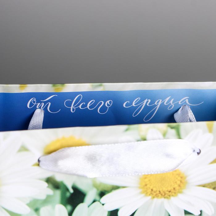 Любой подарок начинается с упаковки. Что может быть трогательнее и волшебнее, чем ритуал разворачивания полученного презента. И именно оригинальная, со вкусом выбранная упаковка выделит ваш подарок из массы других. Она продемонстрирует самые тёплые чувства к виновнику торжества и создаст сказочную атмосферу праздника. Пакет ламинированный вертикальный «Ромашки полевые», L 30 × 41 × 11 см — это то, что вы искали.