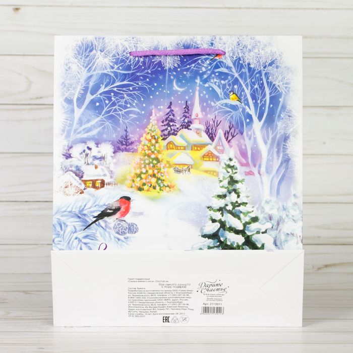 Пакет ламинированный вертикальный с блестками «Сказка зимнего леса», 23 × 27 × 8 см