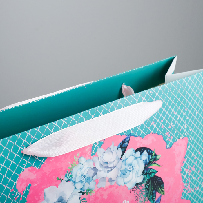 Изделие изготовлено из более плотного материала по сравнению с обычными бумажными пакетами. Оно прекрасно подойдёт как для упаковки подарка, так и для повседневной носки в качестве стильной сумки. Несомненным достоинством является длинная ручка, позволяющая носить вещь на плече. При необходимости складывается. Благодаря компактному размеру не займёт много места.