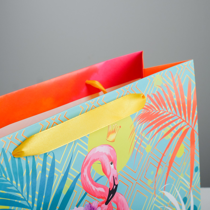Изделие изготовлено из более плотного материала по сравнению с обычными бумажными пакетами. Оно прекрасно подойдёт как для упаковки подарка, так и для повседневной носки в качестве стильной сумки. Несомненным достоинством является длинная ручка, позволяющая носить вещь на плече. При необходимости складывается. Благодаря компактному размеру не займёт много места.