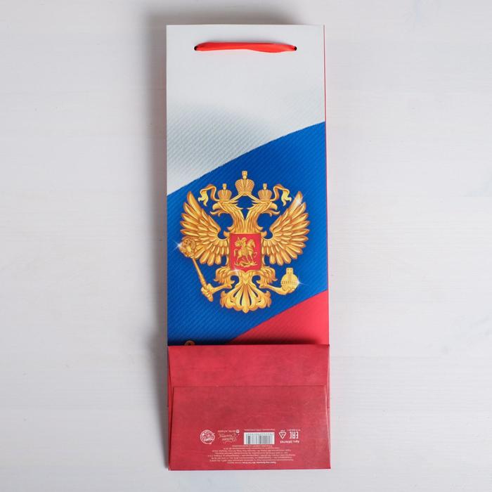 Любой подарок начинается с упаковки. Что может быть трогательнее и волшебнее, чем ритуал разворачивания полученного презента. И именно оригинальная, со вкусом выбранная упаковка выделит ваш подарок из массы других. Она продемонстрирует самые тёплые чувства к виновнику торжества и создаст сказочную атмосферу праздника. Пакет под бутылку «Патриот», 36 × 13 × 10 см — это то, что вы искали.