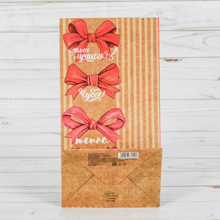Пакет подарочный без ручек «Лучшие пожелания», 10 х 19,3 х 7 см