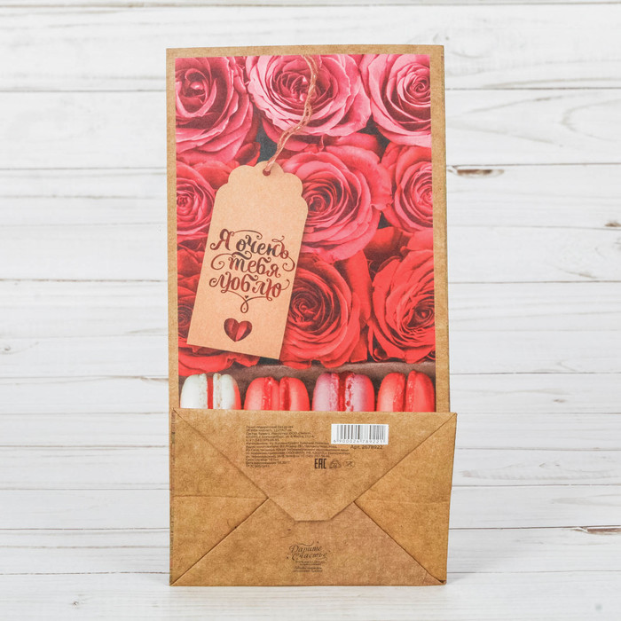 Пакет подарочный без ручек «Я тебя люблю!», 10 х 19,3 х 7 см