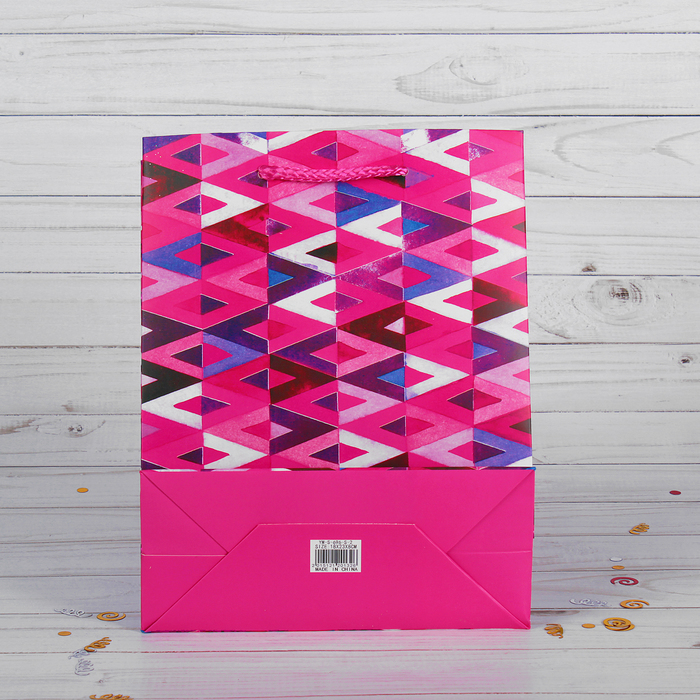 Любой подарок начинается с упаковки. Что может быть трогательнее и волшебнее, чем ритуал разворачивания полученного презента. И именно оригинальная, со вкусом выбранная упаковка выделит ваш подарок из массы других. Она продемонстрирует самые тёплые чувства к виновнику торжества и создаст сказочную атмосферу праздника. Пакет подарочный "Геометрия", цвет розовый, люкс, 18 х 8 х 23 см — это то, что вы искали.