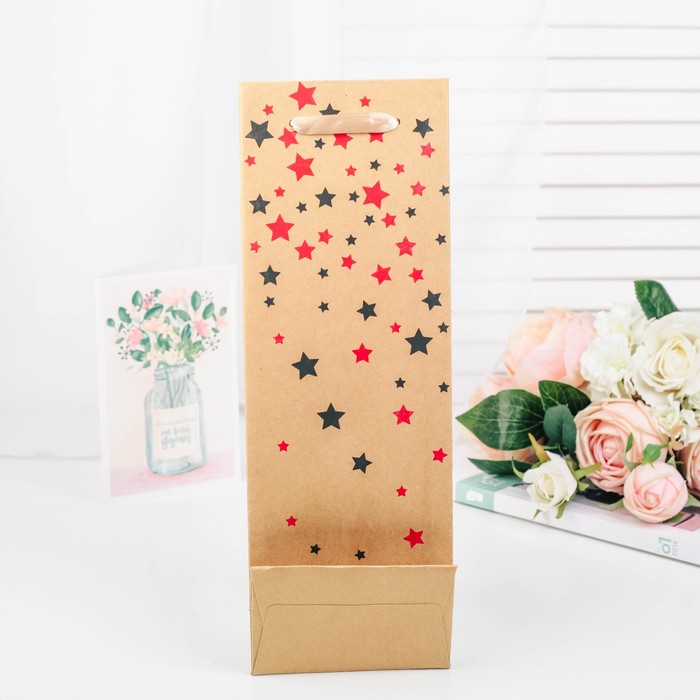 Пакет подарочный под бутылку, 12 х 8 х 35 см