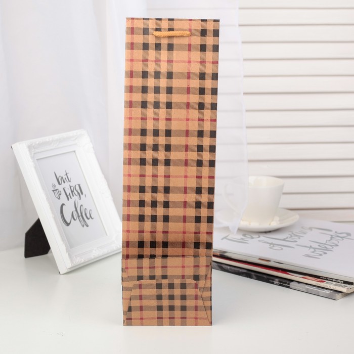 Любой подарок начинается с упаковки. Что может быть трогательнее и волшебнее, чем ритуал разворачивания полученного презента. И именно оригинальная, со вкусом выбранная упаковка выделит ваш подарок из массы других. Она продемонстрирует самые тёплые чувства к виновнику торжества и создаст сказочную атмосферу праздника. Пакет подарочный под бутылку "Клетка", 11 х 10 х 36 см — это то, что вы искали.