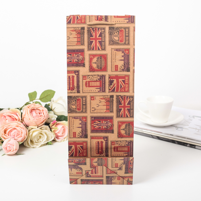 Пакет подарочный под бутылку "Марки", 15 х 9 х 40 см