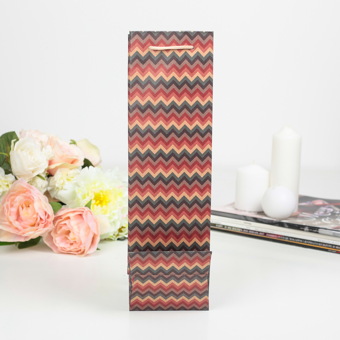 Пакет подарочный под бутылку "Зигзаги", 11 х 10 х 36 см