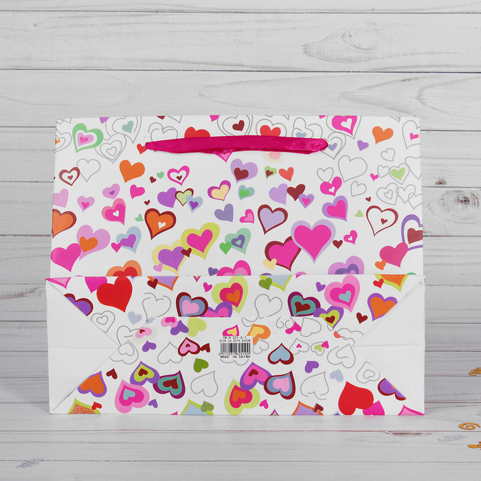 Пакет подарочный "Разноцветные сердечки", люкс, 24,5 х 9 х 19 см