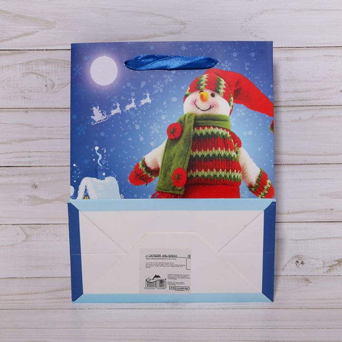 Любой подарок начинается с упаковки. Что может быть трогательнее и волшебнее, чем ритуал разворачивания полученного презента. И именно оригинальная, со вкусом выбранная упаковка выделит ваш подарок из массы других. Она продемонстрирует самые тёплые чувства к виновнику торжества и создаст сказочную атмосферу праздника. Пакет подарочный "Снеговик", 32 х 11 х 26 см — это то, что вы искали.